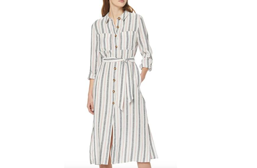 Hemdkleider sind DER Kleider-Trend 2020. Das Schöne an diesen Modellen: Sie können von kleinen Problemzonen am Bauch ablenken, da sie zumeist einen Bindegürtel haben – so wird auch das Piece von Find. Hingucker ist außerdem die Knopfleiste sowie die Längsstreifen, die ebenfalls einen Schlank-Effekt haben. Hier bekommst du das Midi-Kleid für ca. 31 Euro.
