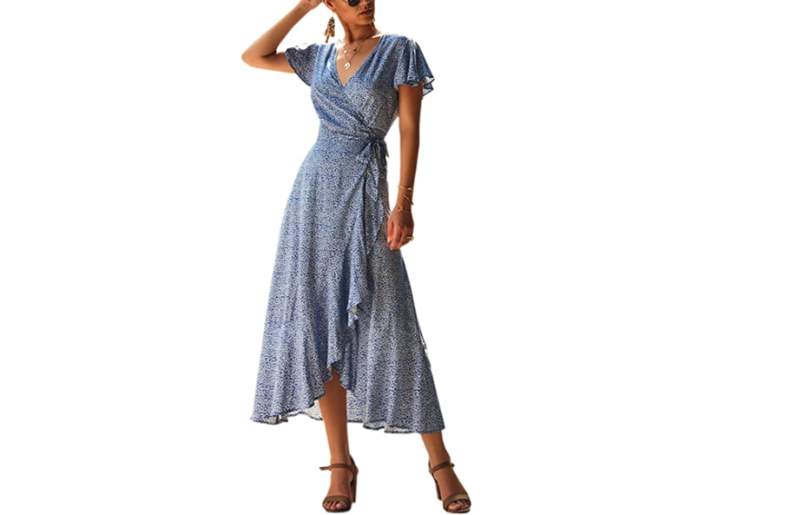 Ein Maxikleid mit Wickel-Details gehört ebenfalls zu den Must-haves im Kleiderschrank. Besonders gut gefällt uns das Modell von Spec4Y, das uns eine tolle Silhouette zaubert. Die verspielten Muster und Volants sorgen direkt für einen verspielt-romantischen Look. Hier bekommst du das Dress schon für ca. 31 Euro …