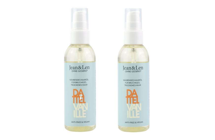 Für eine Extraportion Pflege sorgt das Haaröl Dattel/Vanille von Jean & Len mit Anti-Frizz-Effekt dank reichhaltigem Dattel-Extrakt. Nährendes Soja- und Aprikosenkernöl schenkt dem Haar intensiven Glanz und verbessert die Kämmbarkeit. Das Öl duftet orientalisch-süß nach Dattel und Vanille. Ohne Parabene, Silikone, Palmöl, Mikroplastik und Mineralöl. Online und bei dm erhältlich.