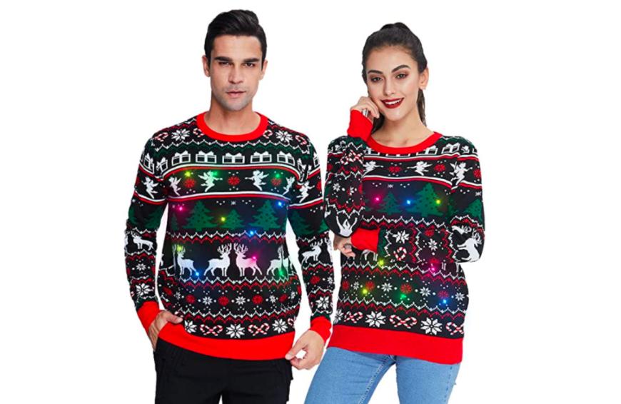 Mit was können wir die Festtagssaison besser einläuten als mit einem Ugly Christmas Sweater? Besonders gut gefällt uns das Modell von Freshhoodies, das nicht nur mit einem kunterbunten Print begeistert, sondern obendrein mit einem Lichteffekt punktet. Die kleinen LED-Lichter ziehen garantiert alle Blicke auf dich. Hier kannst du den Weihnachtspullover für ca. 49 Euro shoppen.