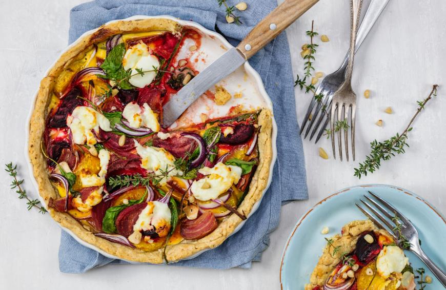 Rezept: Rote-Bete-Zwiebel-Tarte mit Honigsenf-Creme