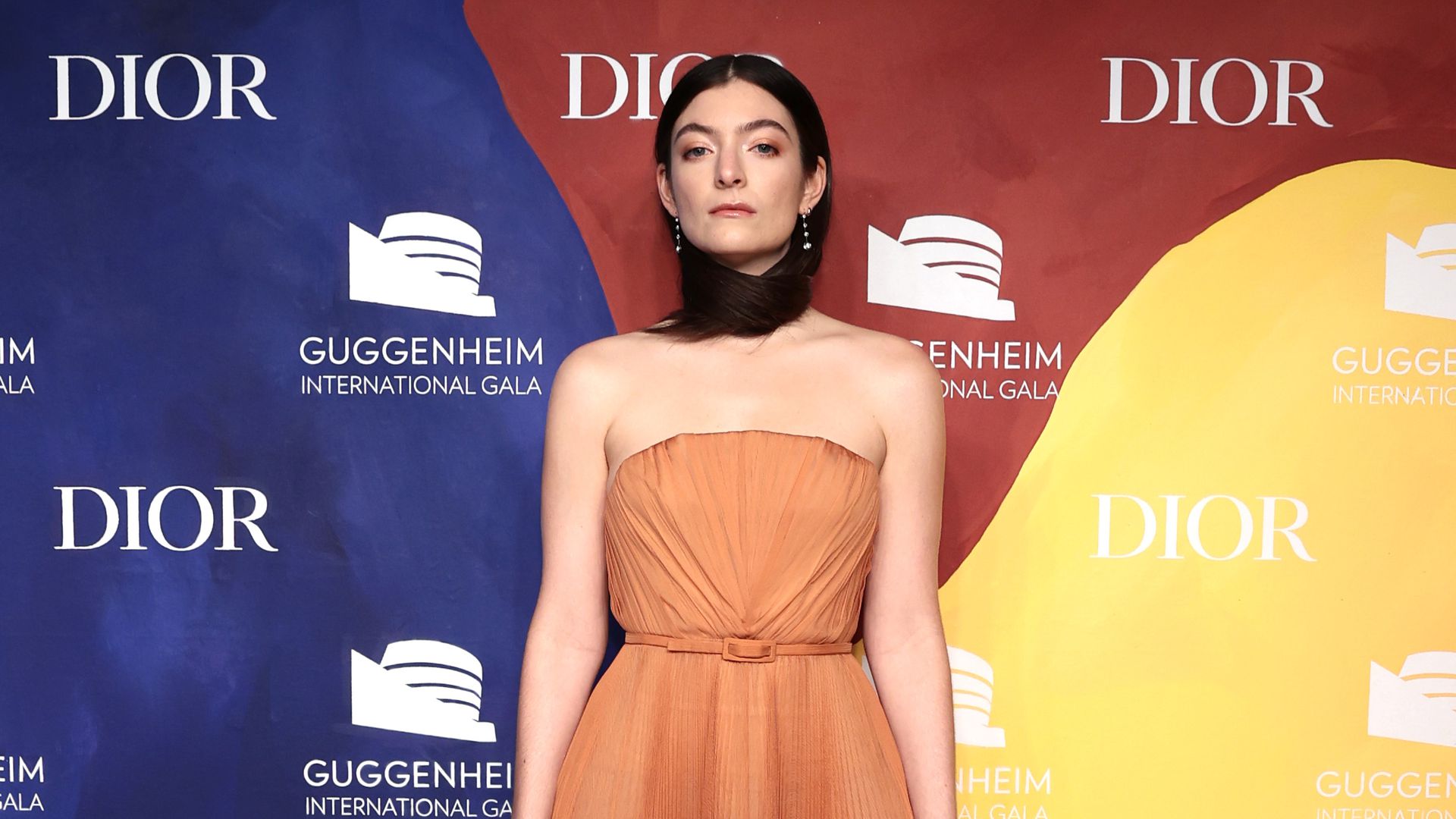 Bei der Guggenheim International Gala präsentierte die 25-Jährige sich in einem herrlichen, pfirsichfarbenen Kleid von Dior. Doch nicht die bodenlange Robe war der Hingucker des Abends. Schulteraufwärts hatte sich der Stylist der „Royals“-Interpretin etwas Besonderes einfallen lassen: Ihre langen, dunklen Haare trug Lorde um den Hals gewickelt als eine Art Schal! Mit dieser innovativen Frisur posierte sie für die Fotografen.