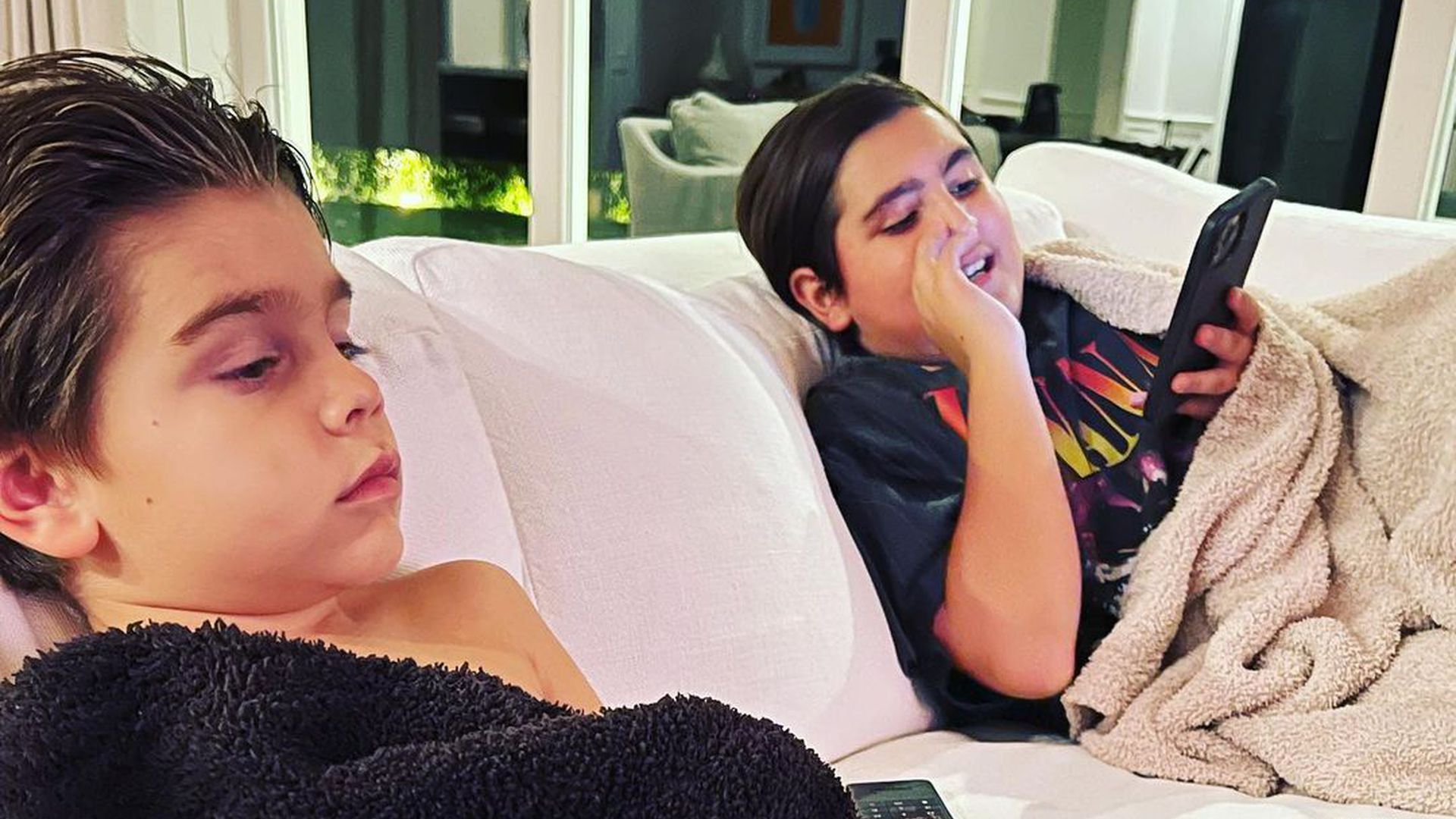 Via Instagram teilte der 38-Jährige ein seltenes Foto seiner beiden Söhne Reign (6) und Mason (11). Zusammen haben es sich die Disick-Männer mit Decken auf dem Sofa gemütlich gemacht. „Jungsabend“, titelte Scott unter dem Beitrag. Seinen Fans fällt vor allem der jüngere Spross mit seinen nassen Haaren ins Auge. „Reign sieht aus wie du mit den nach hinten gegelten Haaren“, bemerkte ein Follower. Ein Weiterer schrieb: „Reign ist Scott Nummer zwei!“
