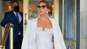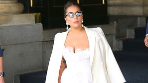 Paparazzi lichteten die 35-Jährige am Donnerstag in New York ab, als sie gerade das dortige Plaza Hotel verließ. Die „Bad Romance“-Interpretin bot den Fotografen eine wahrhaft spektakuläre Show: Lady Gaga trug eine traumhafte weiße Robe mit einem tiefen Ausschnitt und wellenförmigen Tüll, der ihre Beine umschmeichelte – der Dress des italienischen Designers Giambattista Valli könnte glatt als Brautkleid durchgehen! Dazu kombinierte sie cremefarbene Pumps, einen farblichen passenden Mantel, eine markante Sonnenbrille, XXL-Perlenohrringe sowie eine mintfarbene Clutch.