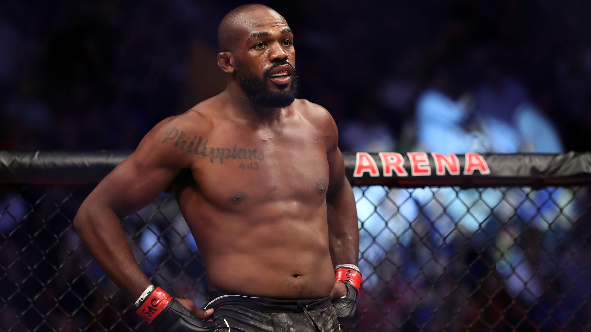 Wie TMZ Sports berichtet, wurde in Las Vegas am Freitag in den frühen Morgenstunden wegen „Hausfriedensbruch“ in einem Hotelzimmer die Polizei gerufen. Eine Frau habe aus Mund und Nase geblutet und ein „schwarzer männlicher Erwachsener, der professioneller MMA-Kämpfer ist“, sei darin verwickelt gewesen. In der Nähe des Hotels hätten die Beamten Jon aufgegriffen und festgenommen. Dabei sei der dreifache Vater wütend geworden und „schlug seinen Kopf auf die Motorhaube des Polizeiautos.“