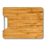 Haushaltsgegenstände kann man gefühlt nie genug haben. Besonders Holzbretter zum Zubereiten von Mahlzeiten oder einfach zum Abendbrot sind ein Must-have für jeden Haushalt. Und die sind perfekt zum Personalisieren, entweder mit den Namen des verlobten Paares, mit dem Hochzeitsdatum oder dem Kennlerndatum der beiden. Natürlich können Sie auch noch eine kleine persönliche Nachricht oder Glückwünsche auf dem Brett hinterlassen.