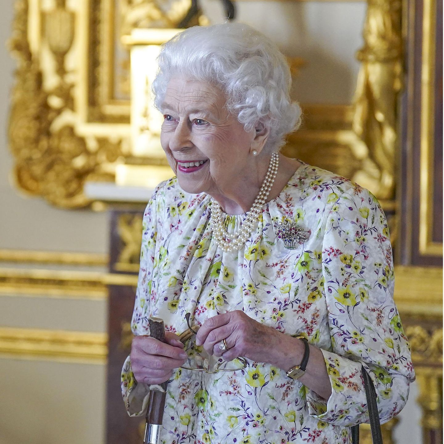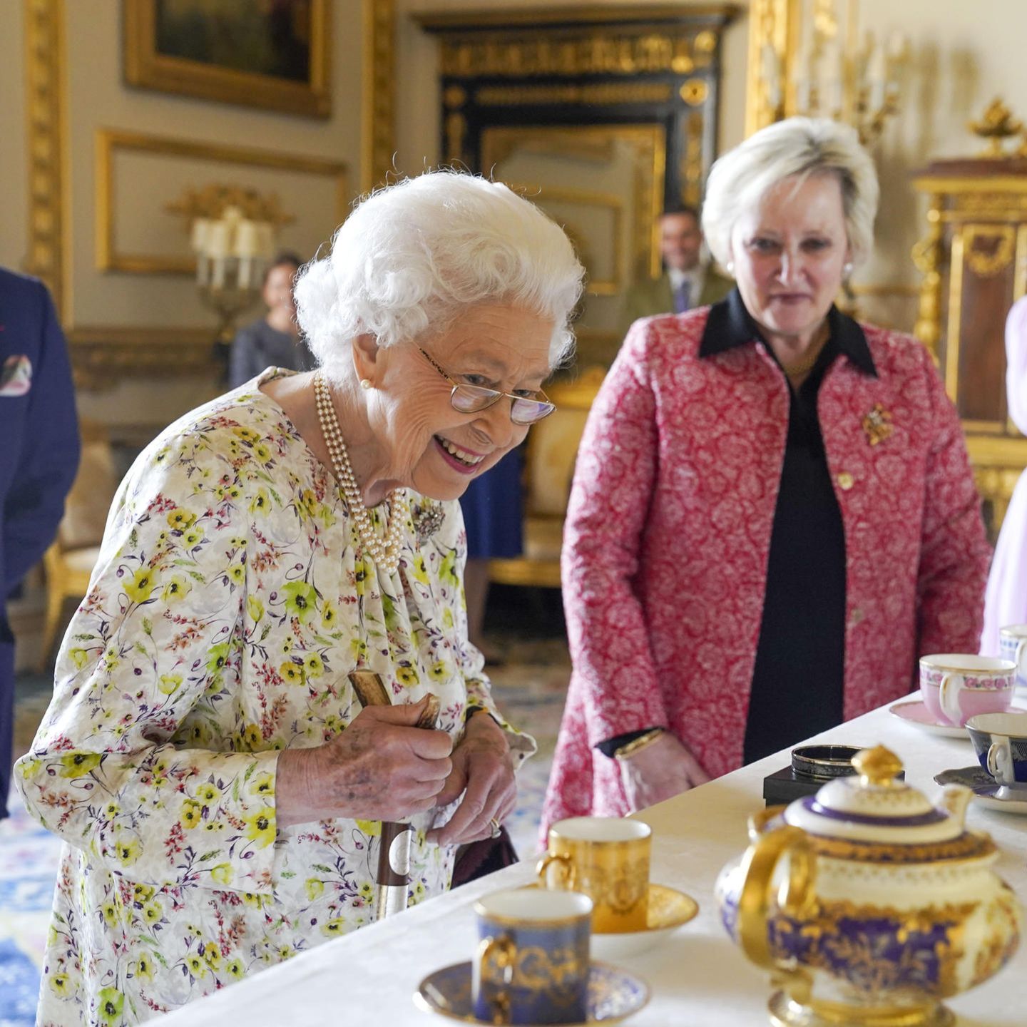 Queen Elizabeth Im Weißen Salon besichtigt sie besonders kostbare Stücke
