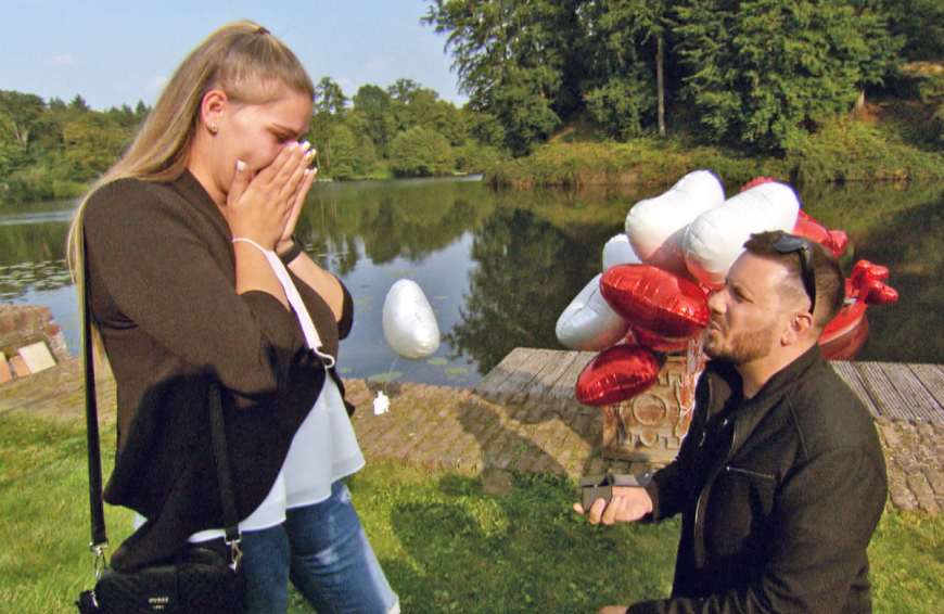 Am zehnten Jahrestag des Paares sollte es dann endlich so weit sein. Flo überraschte Sylvana am Morgen mit einem schönen Frühstück und verriet ihr dort, dass er noch weitere Pläne für den Tag mit ihr habe. Die Töchter Celina und Anastasia würde Oma Silvia betreuen. Sylvana war über so viel Romantik verwundert, denn die Eltern nehmen sich selten Zeit für sich, trotzdem ahnte sie noch nichts. Nach einem leckeren Eis und einem Spaziergang am Schloss ging Flo dann auf die Knie und stellte seiner Liebsten die Fragen aller Fragen. Natürlich war die 29-Jährige überglücklich und antwortete mit einem „JA!“.